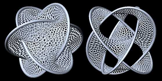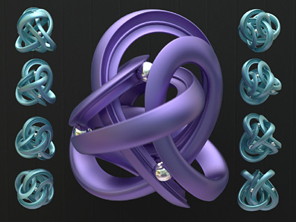 Because of unexpected publicity, I'm low on Klein Bottle Openers and Borromean Rings Pendants. I'm doing all I can to get more, and we're filling orders as they come in, and I'll let you know when these are out for the season as soon as I know myself. I'm sorry for the uncertainty – we're out on the edge of 21st-century manufacturing technology with these pieces, and this is what it's like here.