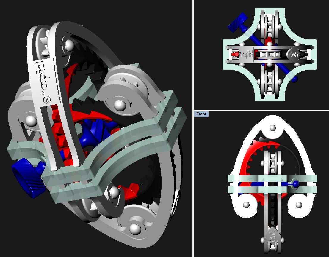 I've been working on this, one way and another, since last December, and now it's finally here. At left below, a render; at right, a photo of one of the first injection-molded samples. These colors might not be the final choices, or the only choices, but this is mostly how it will look. I'm co-designer in collaboration with the CEO of Rhino Toys, inventor and manufacturer of the O-Ball.