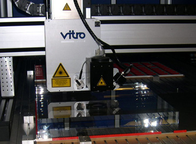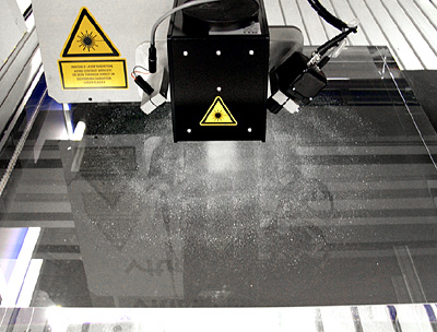 Below, the laser etching machine at work. The job was done at Lazart, the size was no problem for their large-format setup.