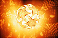 sea-green Corian, with perfectly reflective spheres, suspended by
