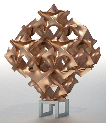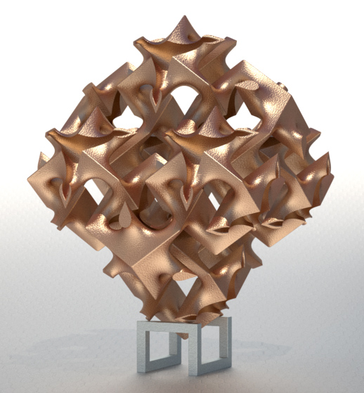 Finally! After weeks of fussing, I nailed the new model for the gyroid. If the metal printing for this works, somebody should give Extrude Hone a medal. Of course, if it doesn't work I'll be "sucking the mop", as the proverb goes. (Update: it worked fine. Go Prometal!)