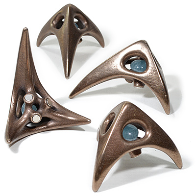 I don't usually announce Shapeways updates here, but my own samples of these just showed up today, and they're so nice I'm thinking I should carry them on this site too. Anyway, they're available now in gold plate, antique bronze (not plated) and steel finish. This photo shows the matte finish, I haven't tried the glossy.