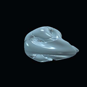 I like that it sits on the boundary between plant and animal: clearly a swimmer when whole, but the halves belong, irresistibly to a fruit.