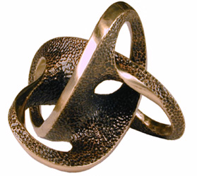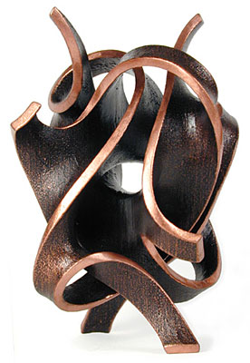 In metal at last! The electroforming experiment was a success, and here is the Objet model from below, coated with about a millimeter of copper. I'm happy with this outcome: this piece is strong, light and durable. The metal is quite solid and nonporous, and the copper patinated easily with moderate heat.