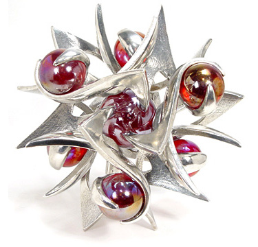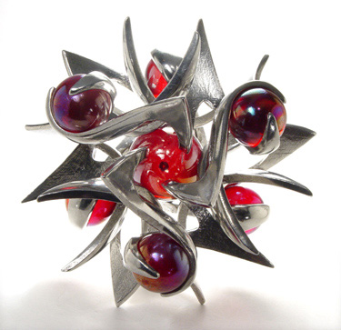 I made a few of these by pewter casting from a stereolithography original. It turns out marbles aren't made with any precision at all; I sorted through over 100 to find ones the right size for these.