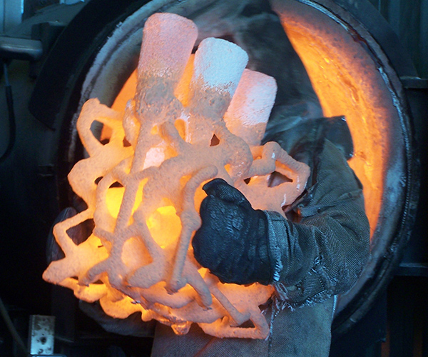 Finished bronze – Screenshot of the model – In wax – Dipping the ceramic shell – Just cast! – Chasing – Finished